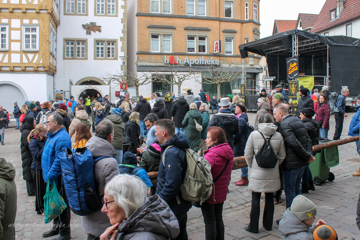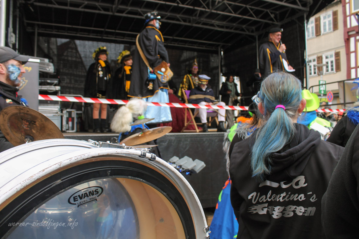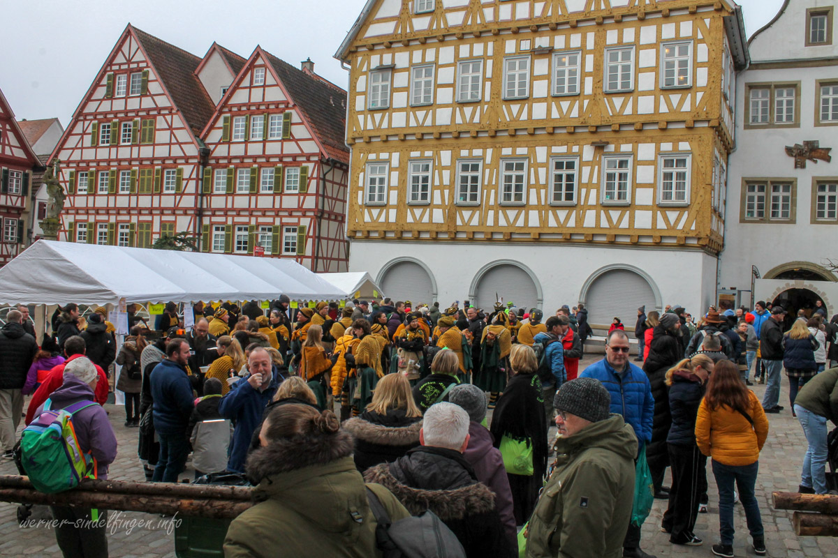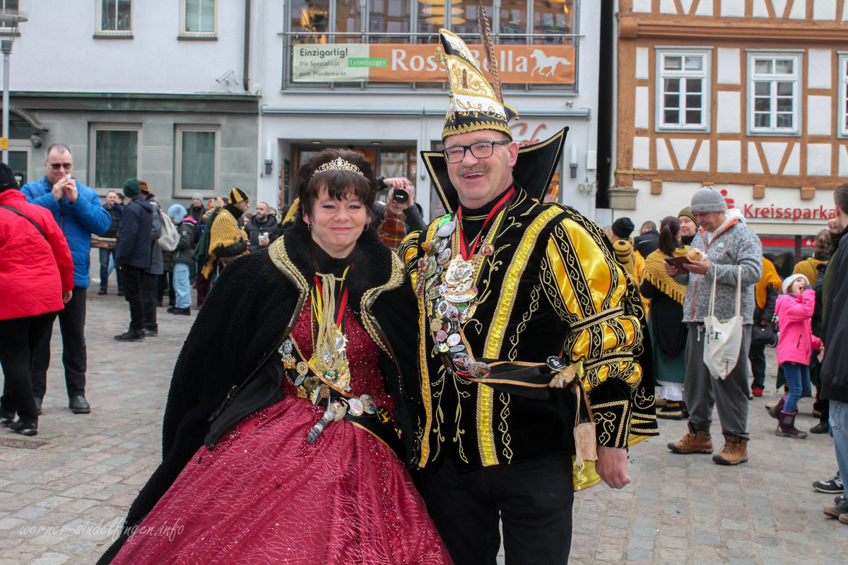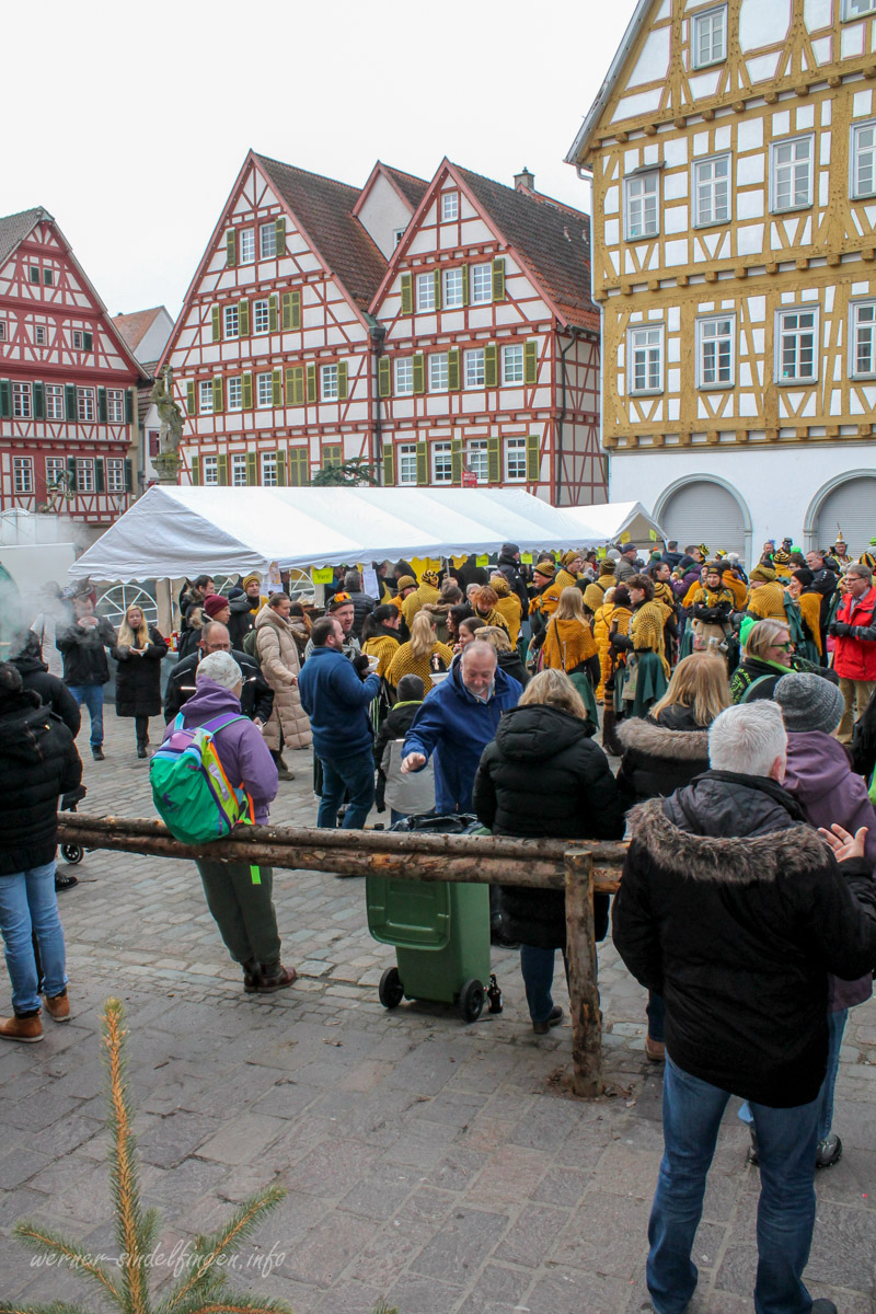 Besonders emotional war der diesjährige Sturm, denn es war der letzte für Widmaier und Killinger. Beide scheiden 2026 aus dem Amt. Entsprechend aufmerksam lauschten sie den Anklagepunkten, die die Gumpa-Hexa trotz Schmuddelwetters lautstark auf dem Rathausplatz vortrugen.