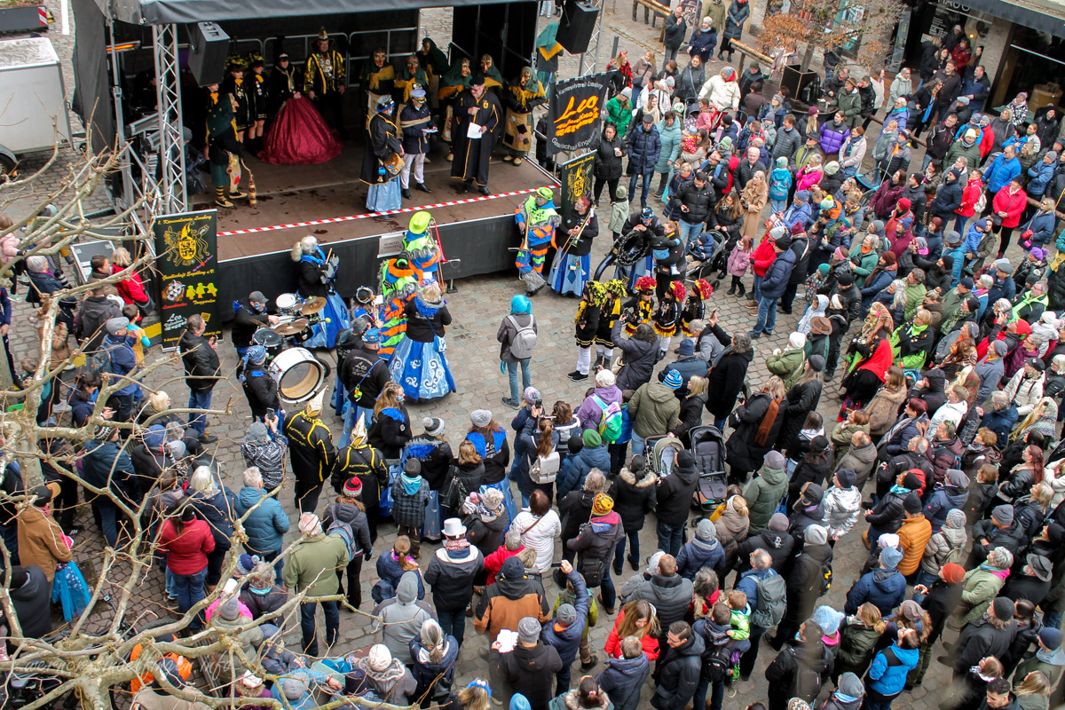 Am Ende wurden Bürgermeisterin und Erster Beigeordneter symbolisch ihrer Macht enthoben und auf dem Rathausplatz sogar in eine abgesperrte Baustelle verbannt. Die Narren hatten nun offiziell das Sagen.