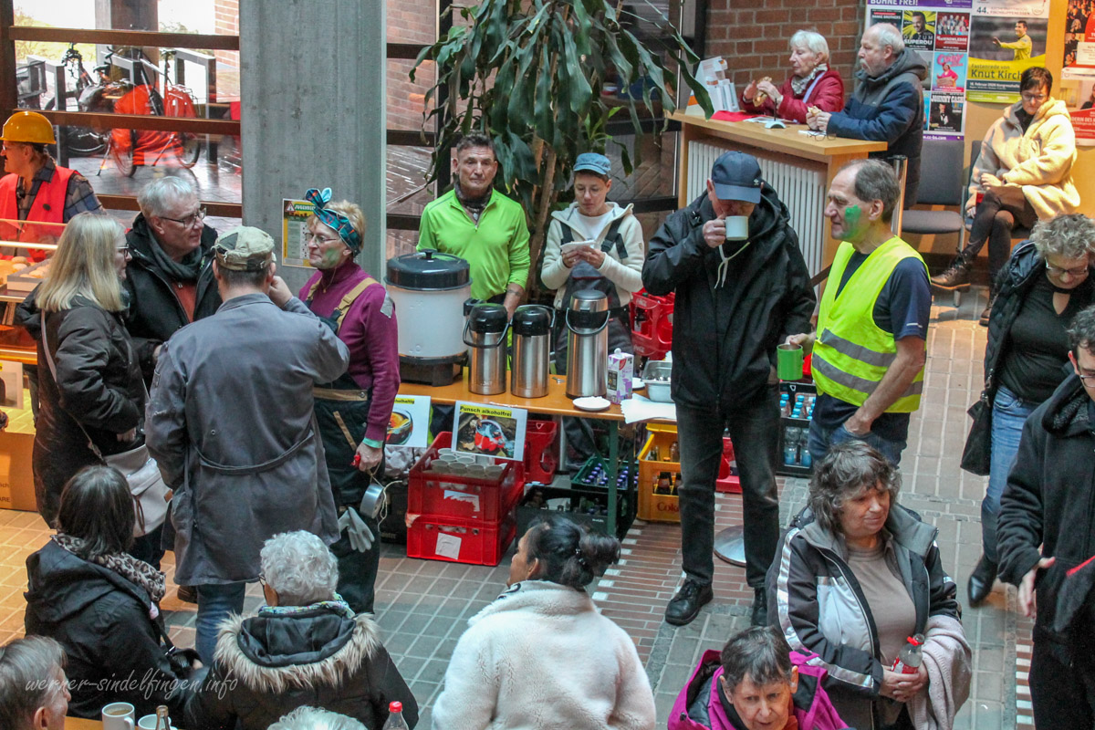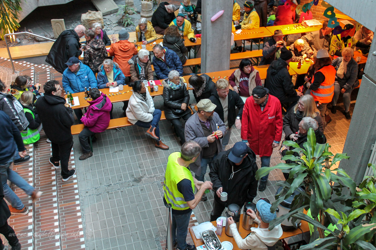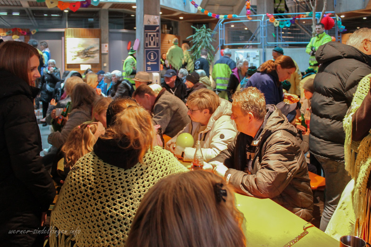 Ins Visier nahmen die Narren mehrere Großprojekte der Stadt. Bauvorhaben wie Wärmenetz und vor allem die neue Kläranlage. Diese bekam ihr Fett weg – zu teuer, zu technisch, und der Klärschlamm womöglich bald als Wellnessprodukt? „Schlamm isch gut für Haut und Haar“, witzelten die Hexen unter dem Applaus der Zuschauer.