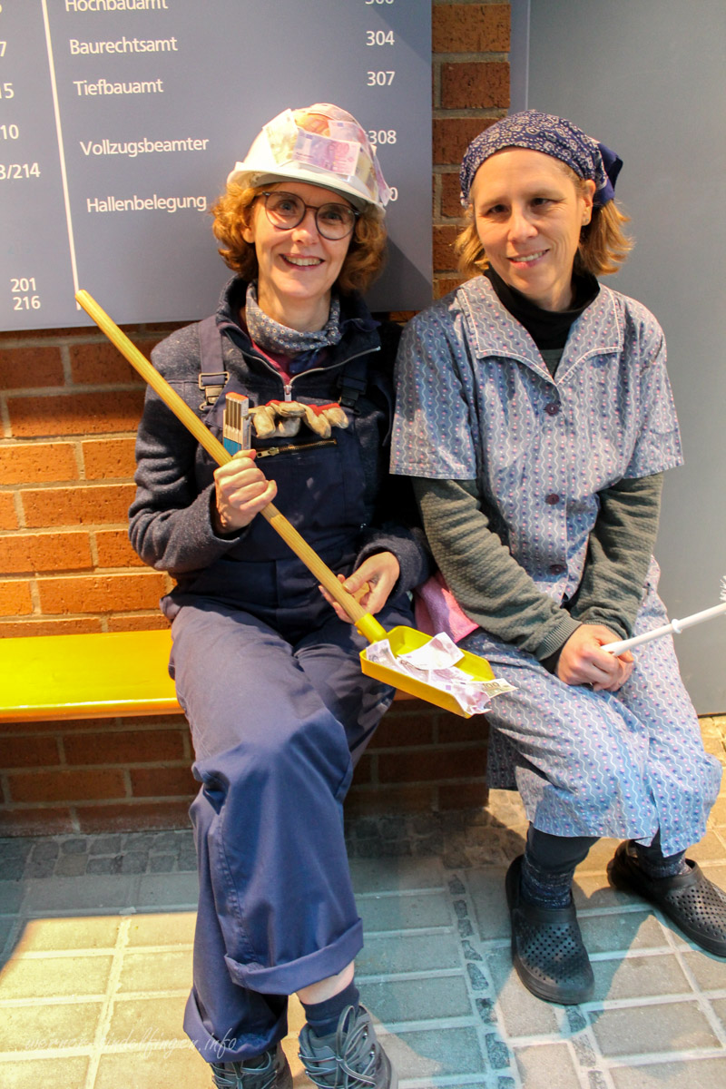 Auch die Diskussion um Beschattung im Ortskern wurde närrisch aufgegriffen. Während die Verwaltung plant, setzen die Hexen lieber auf die schnelle Lösung, Sonnenschirm auf, fertig. Narrensicher und kostengünstig.