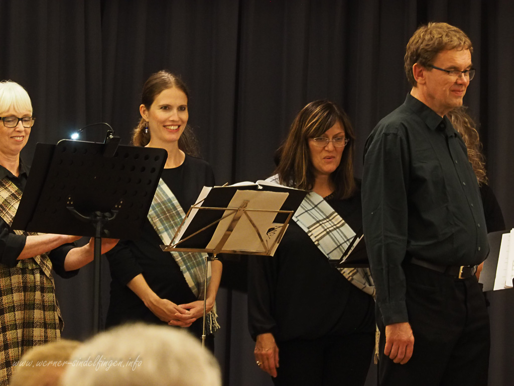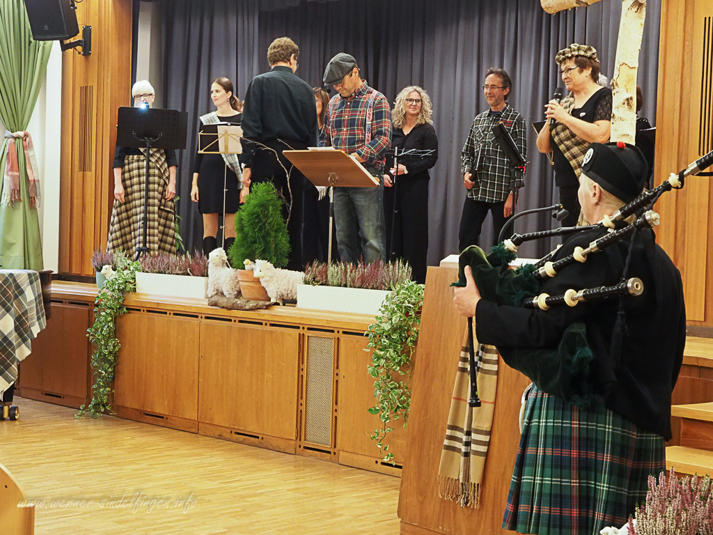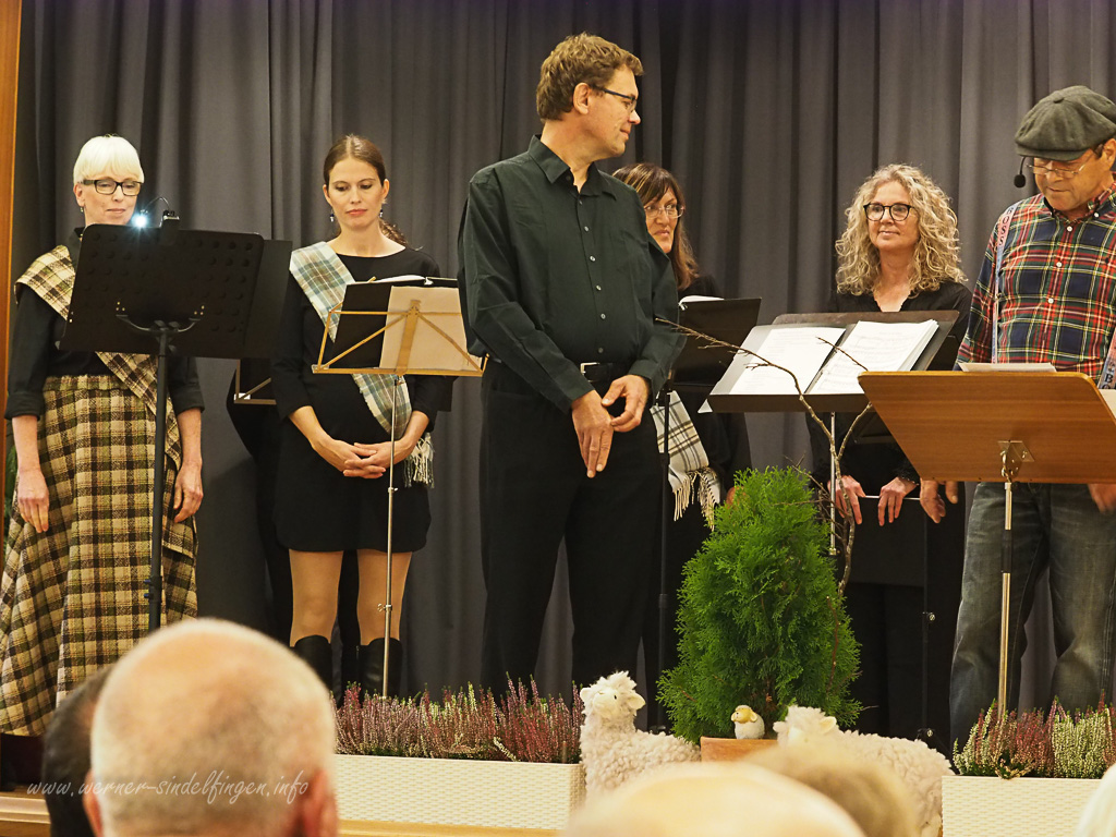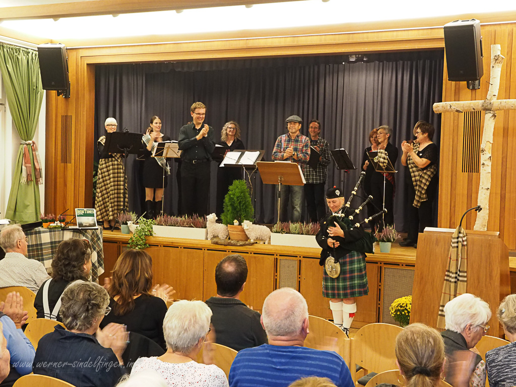 Letztendlich begleiteten Andrea Bub mit ihren Flöten und Karin Schmidtke (Caverhill Guardians) mit ihrem Dudelsack und am Flügel Detlev Siber den Chor. Einige Stücke ergänzte dann auch Chorleiter Johannes Spyrka mit eigens für den Chor geschriebenen Sätzen.