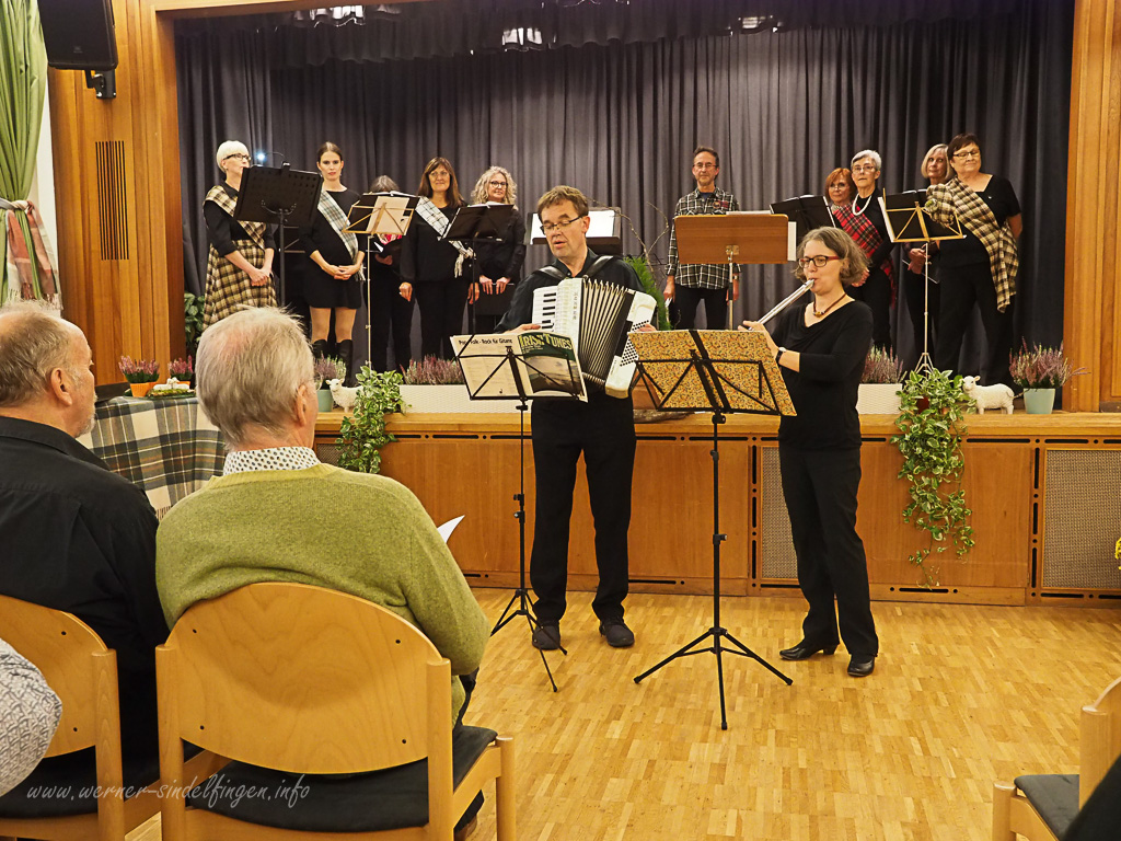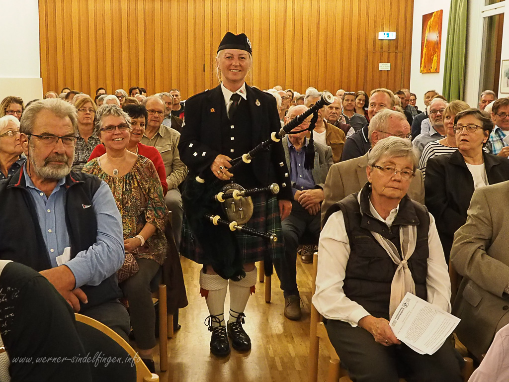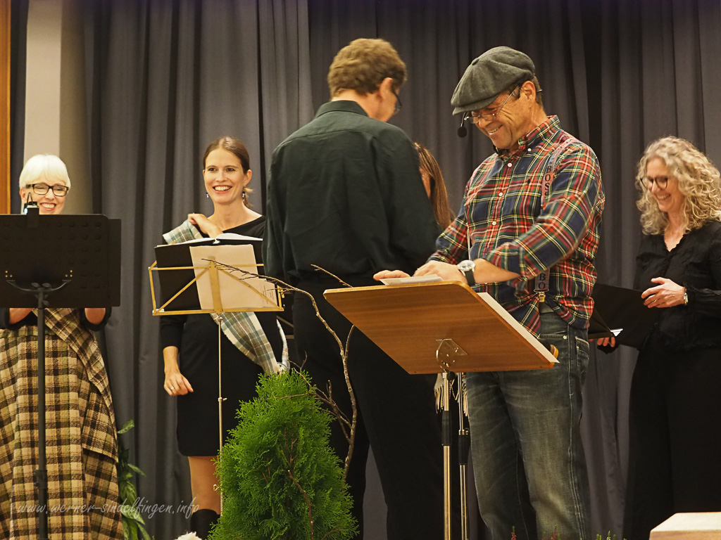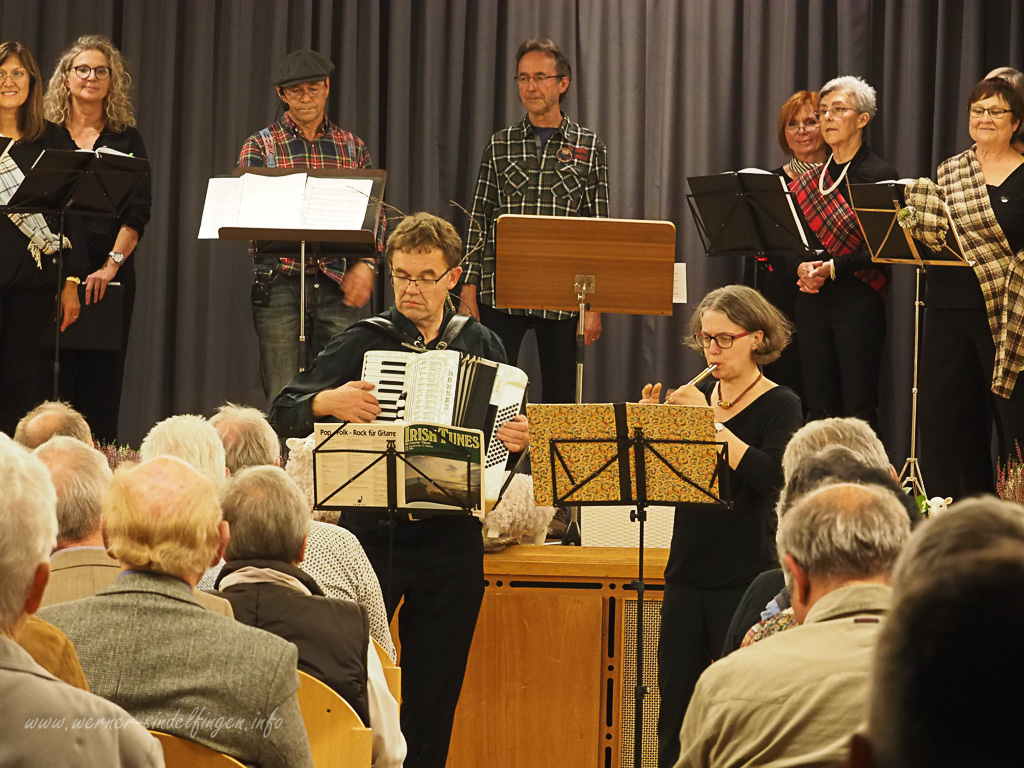 Letztendlich begleiteten Andrea Bub mit ihren Flöten und Karin Schmidtke (Caverhill Guardians) mit ihrem Dudelsack und am Flügel Detlev Siber den Chor. Einige Stücke ergänzte dann auch Chorleiter Johannes Spyrka mit eigens für den Chor geschriebenen Sätzen.