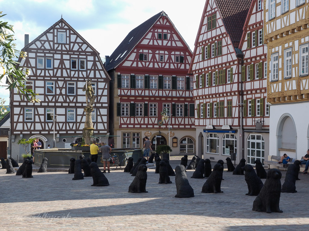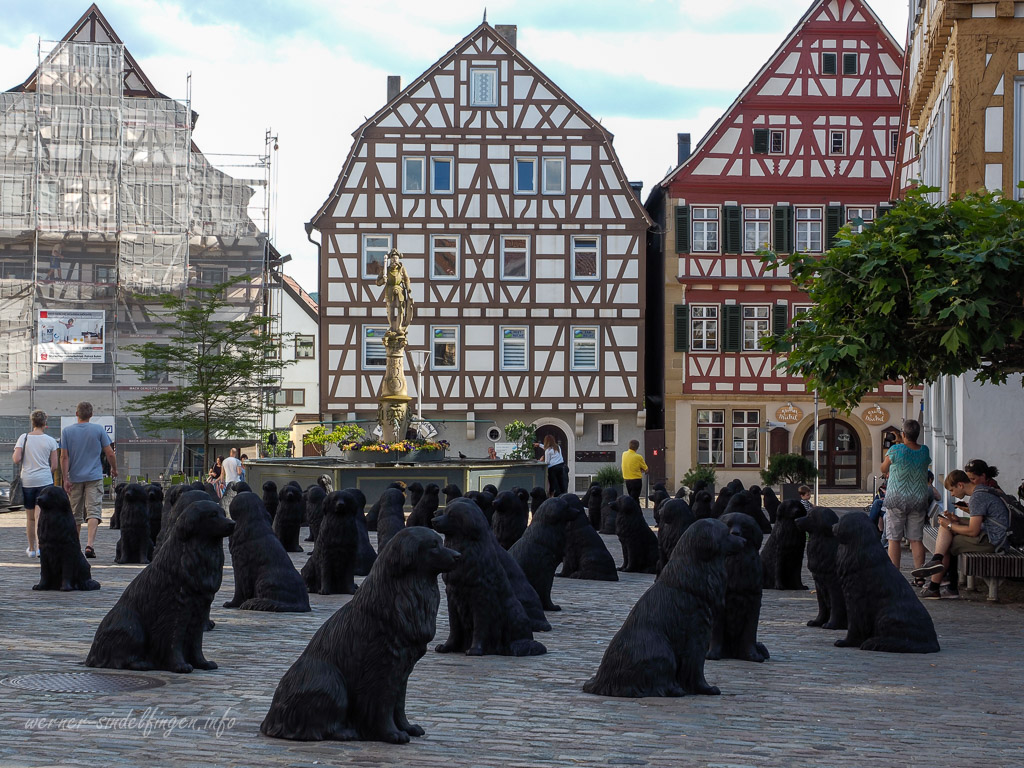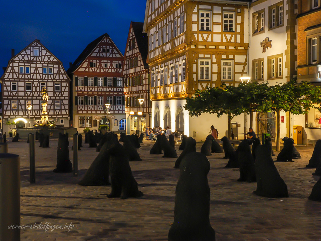Nicht weit davon entfernt befindet sich die sanierte Brunnenanlage. Das Wasser für die beiden Springbrunnen und den Teuchelbrunnen am Hauptweg stammt übrigens aus einer Quelle im Gewann Schellert im hinteren Sommerhofental. Am Brunnen kommt das Wasser dann aus der sogenannte Marktbrunnenleitung. Diese entstand schon im Jahre 1558 und ist seitdem mehrmals umgebaut, saniert und repariert worden. Mit Wasser aus dieser Marktbrunnenleitung wurde auch der Schwätzweiberbrunnen früher versorgt. Seit 1999 besteht die Marktbrunnenleitung schließlich aus einem Kunststoffrohr was teilweise in das Gussrohr eingeschoben wurde.