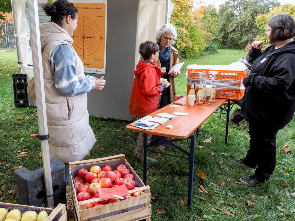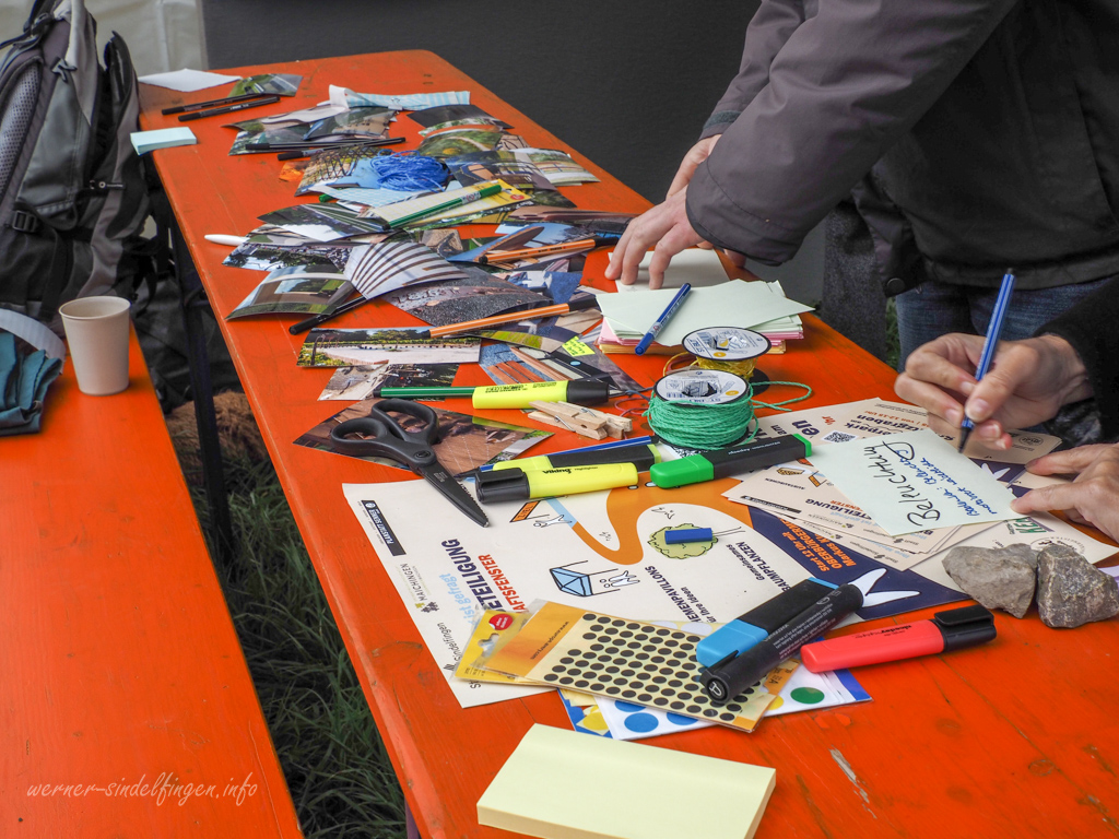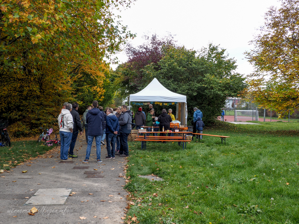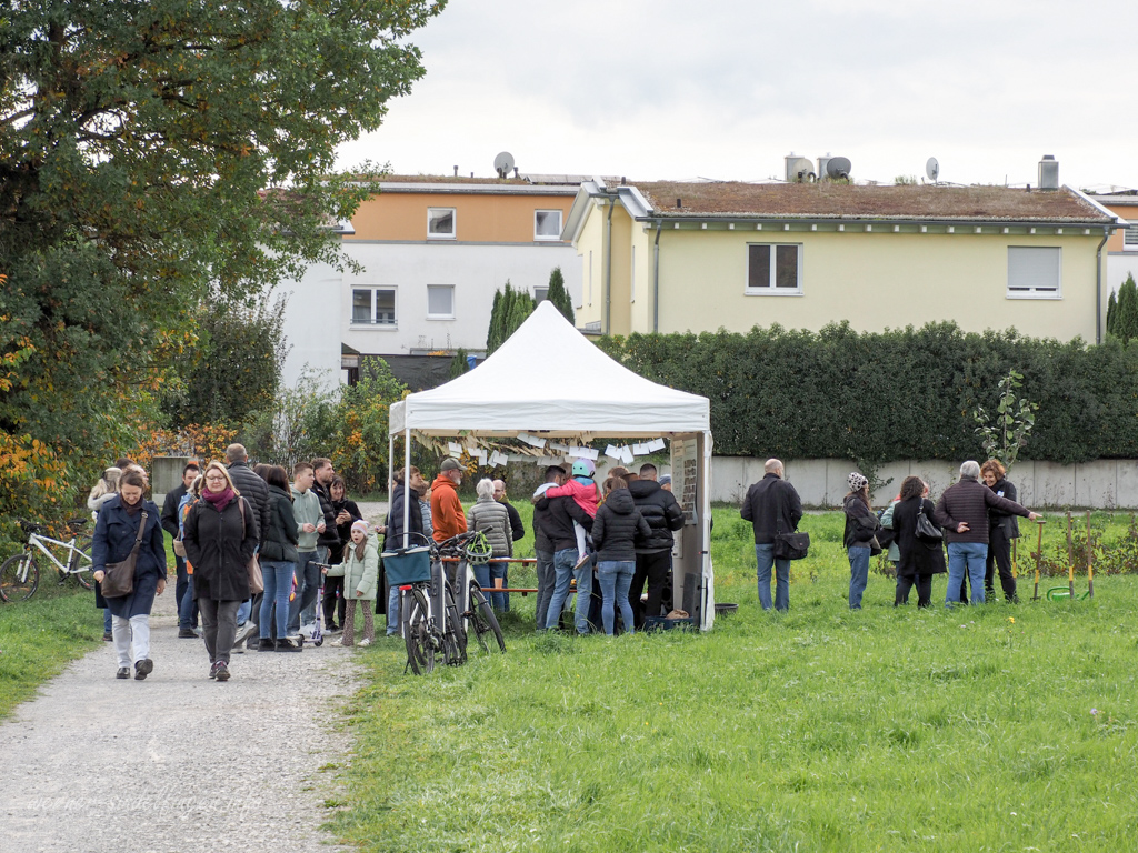 Nach der Begrüßung durch Oberbürgermeister Markus Kleemann und Ortsvorsteher Wolfgang Stierle erwarteten die Teilnehmer vier Themenpavillons mit interaktiven Mitmachaktionen. Wer bis zum Schluss mitmachte, durfte sich über Obstkuchen und Getränke freuen.