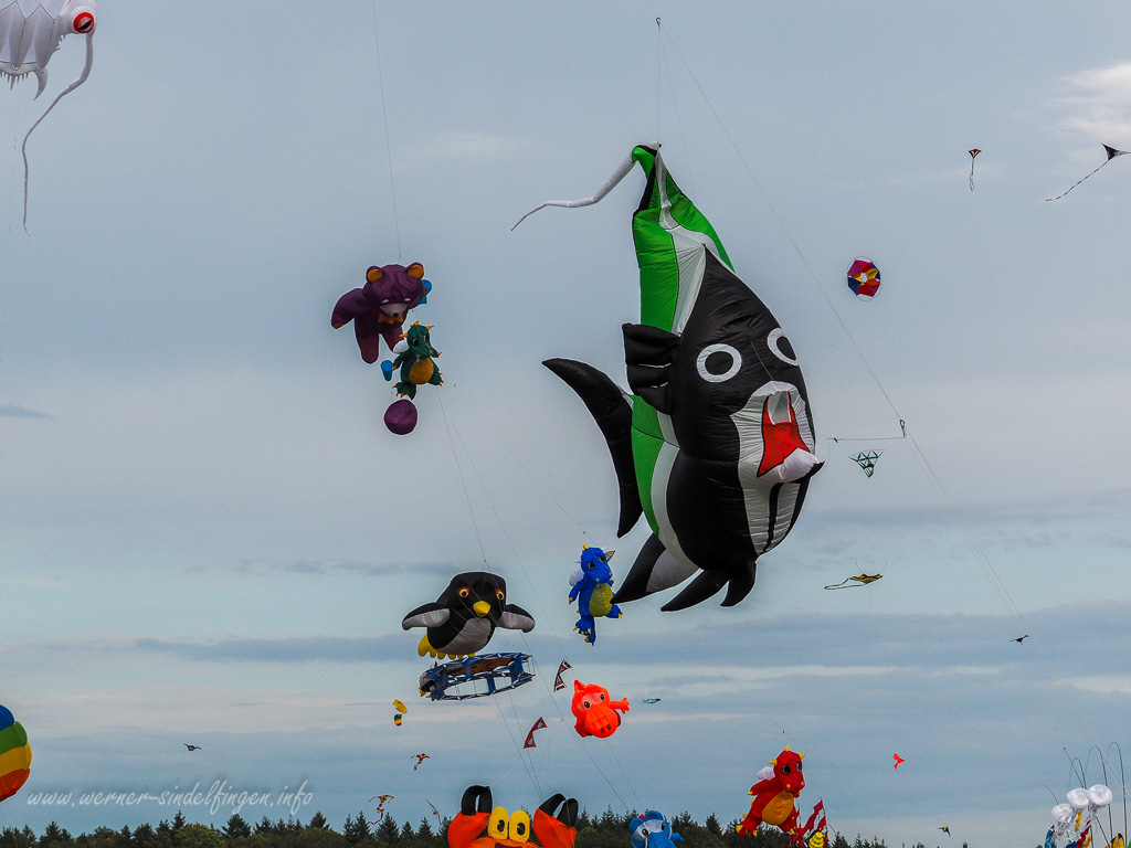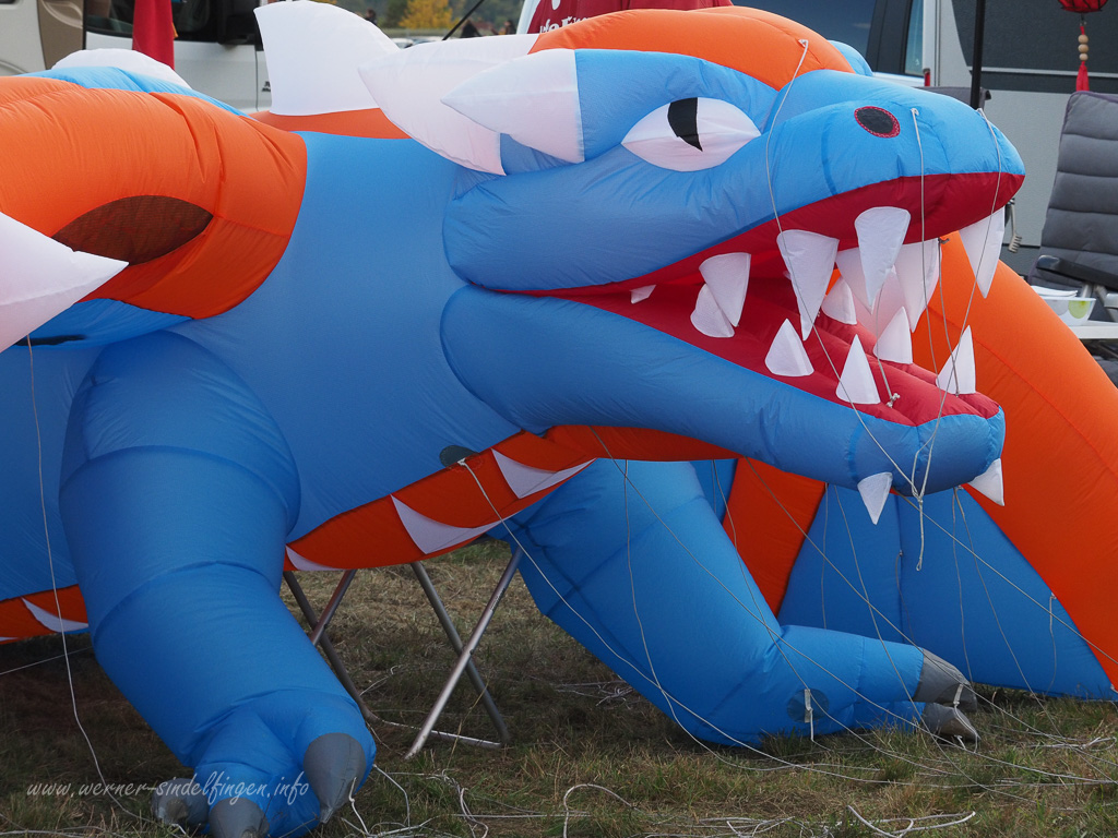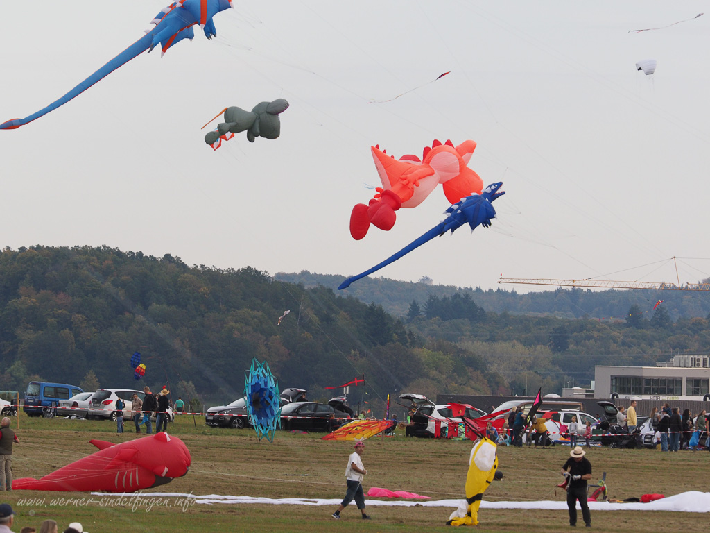 Das schöne Wetter mit teilweise gutem aber auch böigen Wind machte es möglich auch große Drachen erfolgreich steigen zu lassen. Mit den zahlreichen teils riesigen Figuren, wie etwa Teufel, Wal, Drachen und mehr verwandelten die aktiven Drachenflieger den Himmel am Flughafen in ein buntes Meer. Am Samstagabend ab 19:00 Uhr begann dann das Nachtprogramm. Eine aufwendige Lichtshow mit Drachen und ein großes Feuerwerk am Schluß durfte dabei dann auch nicht fehlen.