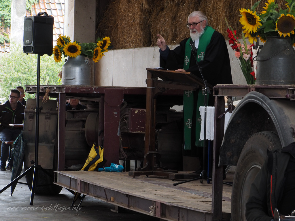 Dieses mal fand das Hoffest allerdings das erste mal bei schlechtem Wetter statt. Doch schon beim Gottesdienst war einiges auf dem Hof los. Wetter bedingt wurden alle Attraktionen die unter Dach stattfanden bevorzugt. Federrundfahrten und die Fahrzeugschau sowie auch das Mais-Labyrinth waren nicht so der Hit.