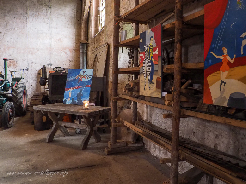 Immer ein besonderes Highlight ist natürlich die Scheunenkirche. Im Kirchenschiff dieser Kirche gab es  eine Vernissage. Die Einführung in die Benefiz-Ausstellung von Karin Mozbeichelum   übernahm Herr Ernst Krohmer  um 12:30 Uhr .