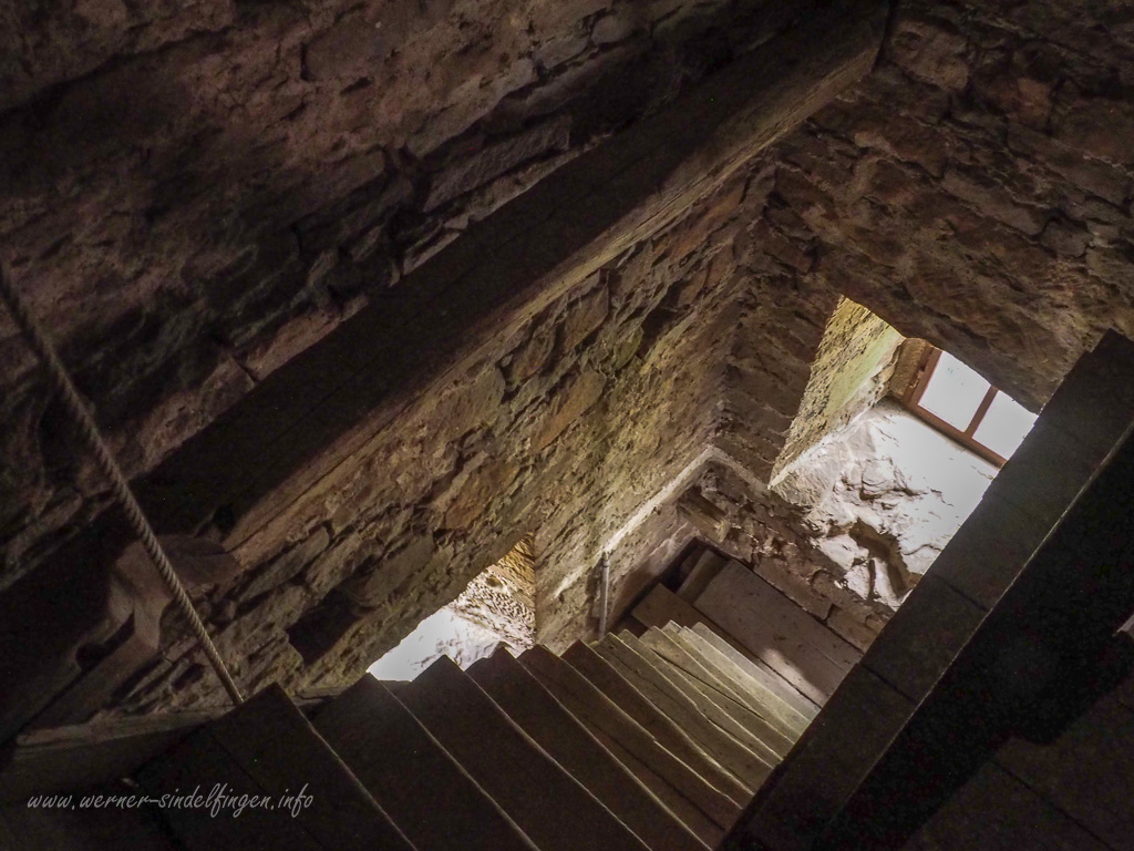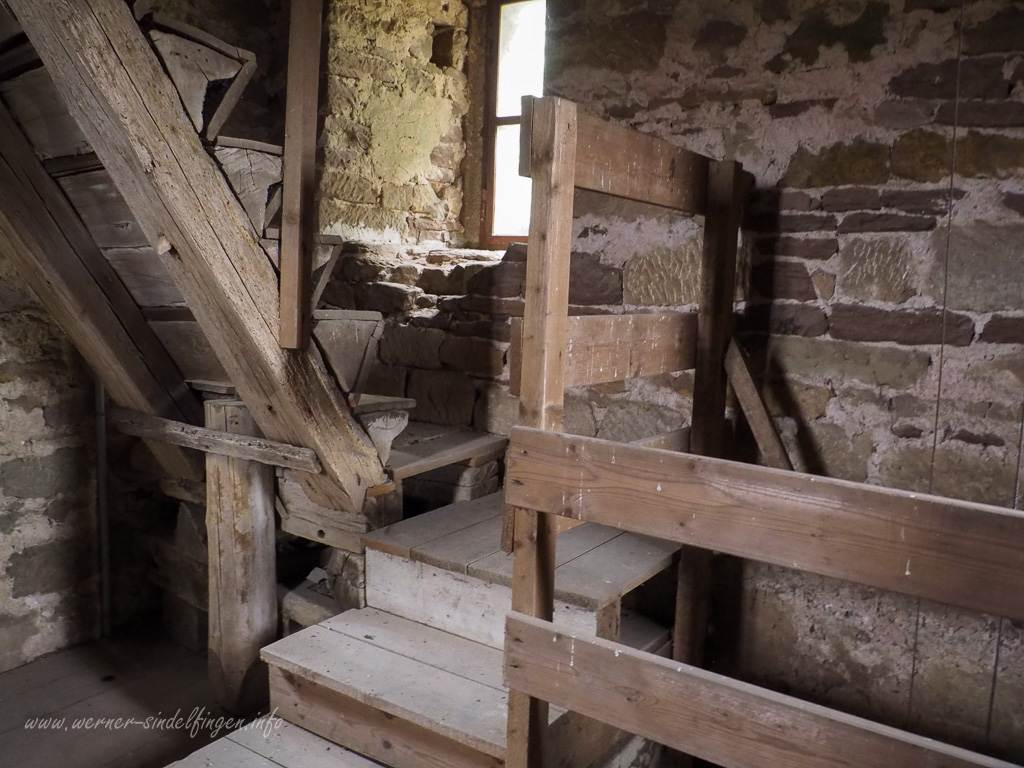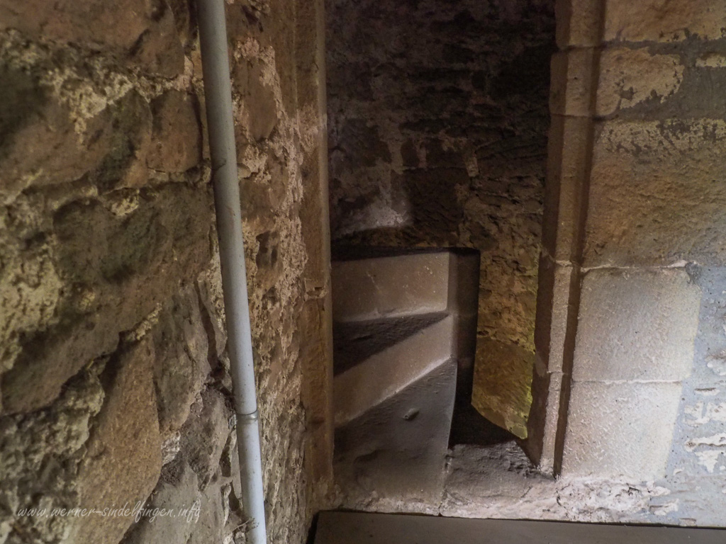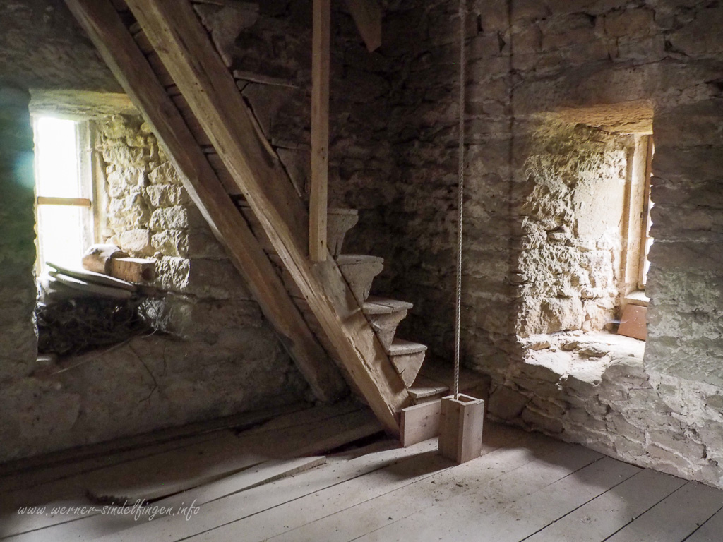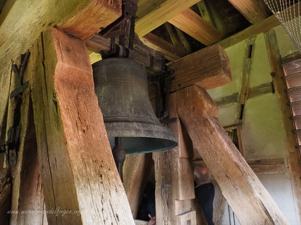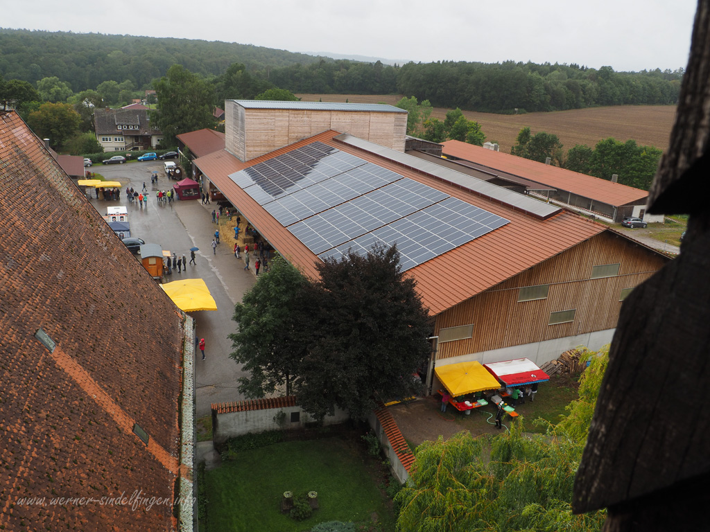 Ab 13:30 Uhr konnte dann auch der Kirchturm bestiegen werden. Über enge und steile Treppen ging es hinauf bis zur Kirchturmglocke. Von hier oben bot sich ein besonderer Überblick über das Hofgut. Ein Blick auf den Parkplatz machte dabei schon deutlich, das Wetter hat doch viele Gäste abgehalten.