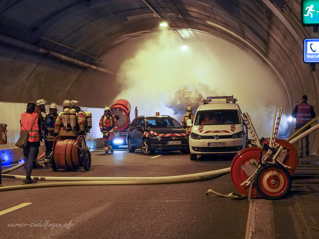 Bei Beginn der Übung war die Überwachung der Tunnels im regulären Automatikbetrieb. Das brennende Fahrzeug löste also automatisch den Feueralarm im Tunnel aus. Dadurch wurden dann die Rettungskräfte aus den Landkreisen Ludwigsburg und Böblingen alarmiert. Gleichzeitig wurde mit Rauchmaschinen, und ungiftigen Medizinischen Rauch, eine starke Rauchentwicklung simuliert.