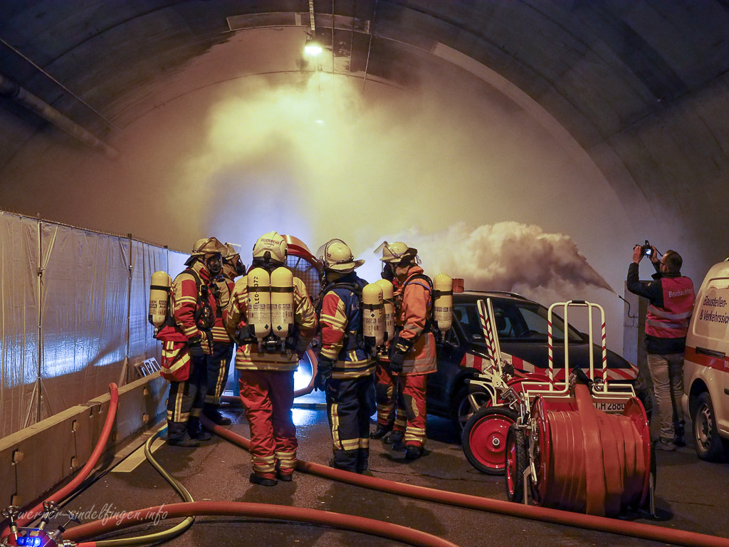 Auch wenn die automatische Durchsage der Feuermeldeanlage nicht korrekt funktioniert hat, War die Übung Erfolgreich. An der Großübung in und außerhalb des Tunnels nahmen Feuerwehren, Rettungs- und Sanitätsdienste sowie das THW aus den Landkreisen Böblingen und Ludwigsburg sowie dem Enzkreis teil. Weiterhin waren die Autobahnmeisterei Ludwigsburg und die Polizei im Einsatz. Regierungspräsident Wolfgang Reimer bedankte sich abschließend besonders bei den ehrenamtlichen Einsatzkräften: „Ich bin beeindruckt vom Engagement und Zusammenspiel aller Helferinnen und Helfer und danke insbesondere den vielen Ehrenamtlichen für ihren Einsatz. Sie ermöglichen das hohe Sicherheitsniveaus hier am Engelbergtunnel.“