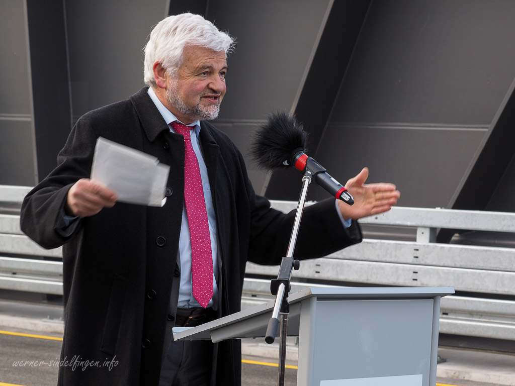 Der Parlamentarische Staatssekretär im Bundesministerium für Verkehr und digitale Infrastruktur (BMVI) Steffen Bilger. Regierungspräsident Wolfgang Reimer und Andreas Hollatz, Ministerialdirigent im Verkehrsministerium Baden-Württemberg.